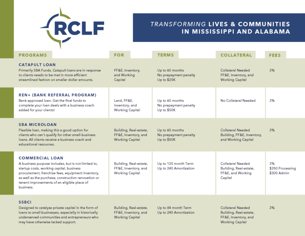 RCLF wants to work with you to tailor a loan that meets your specific needs. Let us assist you in creating, developing, or expanding your business successfully.